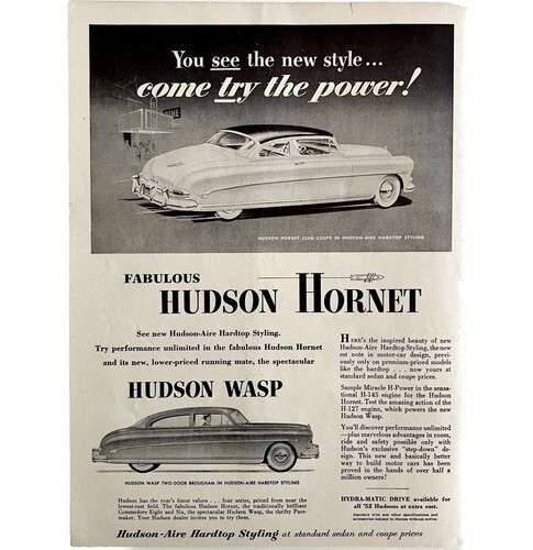 Hudson Hornet Club Coupe Advertisement 1953 and 22 similar items
