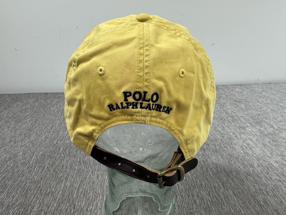 Polo Ralph Lauren Hat Cap Strap Back Yellow Color Pony Dad Leather Adjustable