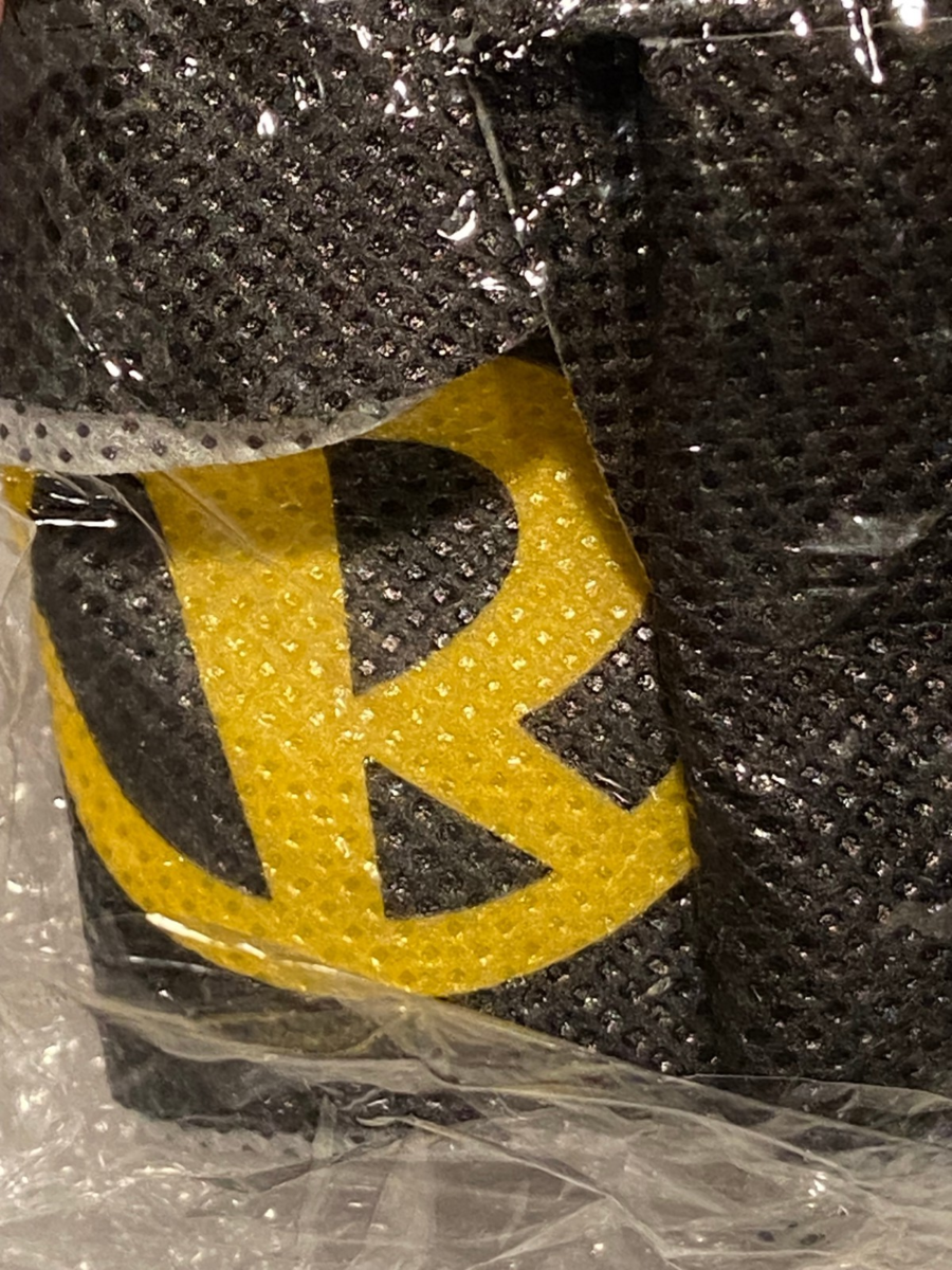 It says the DC character's name on the mask strip and their mask or hat on the front.