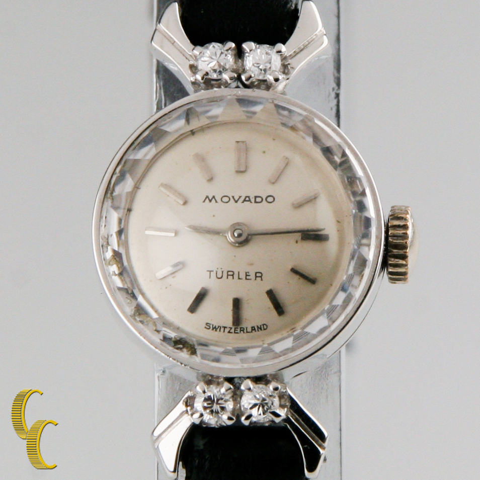 Women's Vintage 18k White Gold Movado Turler Watch W/Diamonds