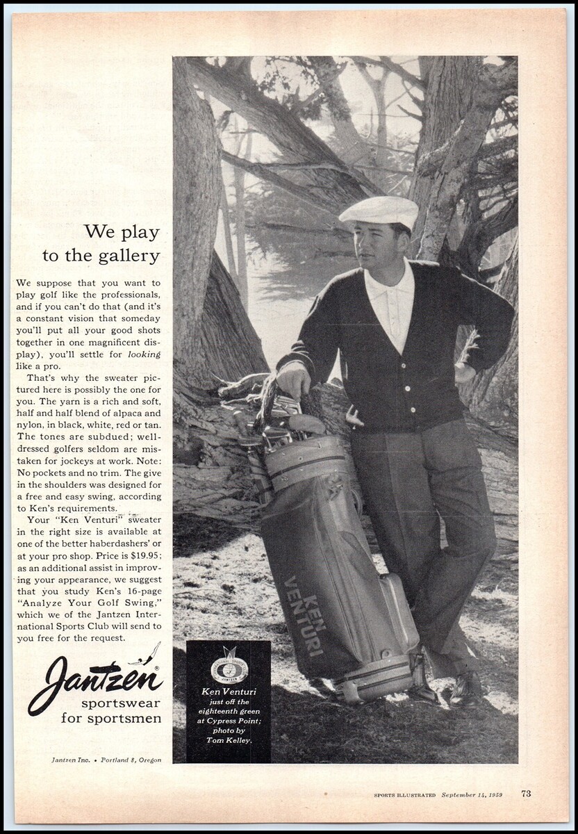 1950s Jantzen Ken Venturi Sweater PRINT AD Pro Golfer at Cypress Point BX2