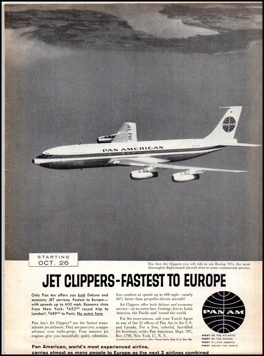 1950s Pan Am Pan American Airlines PRINT AD Jet Clippers - Fastest To Europe BX2