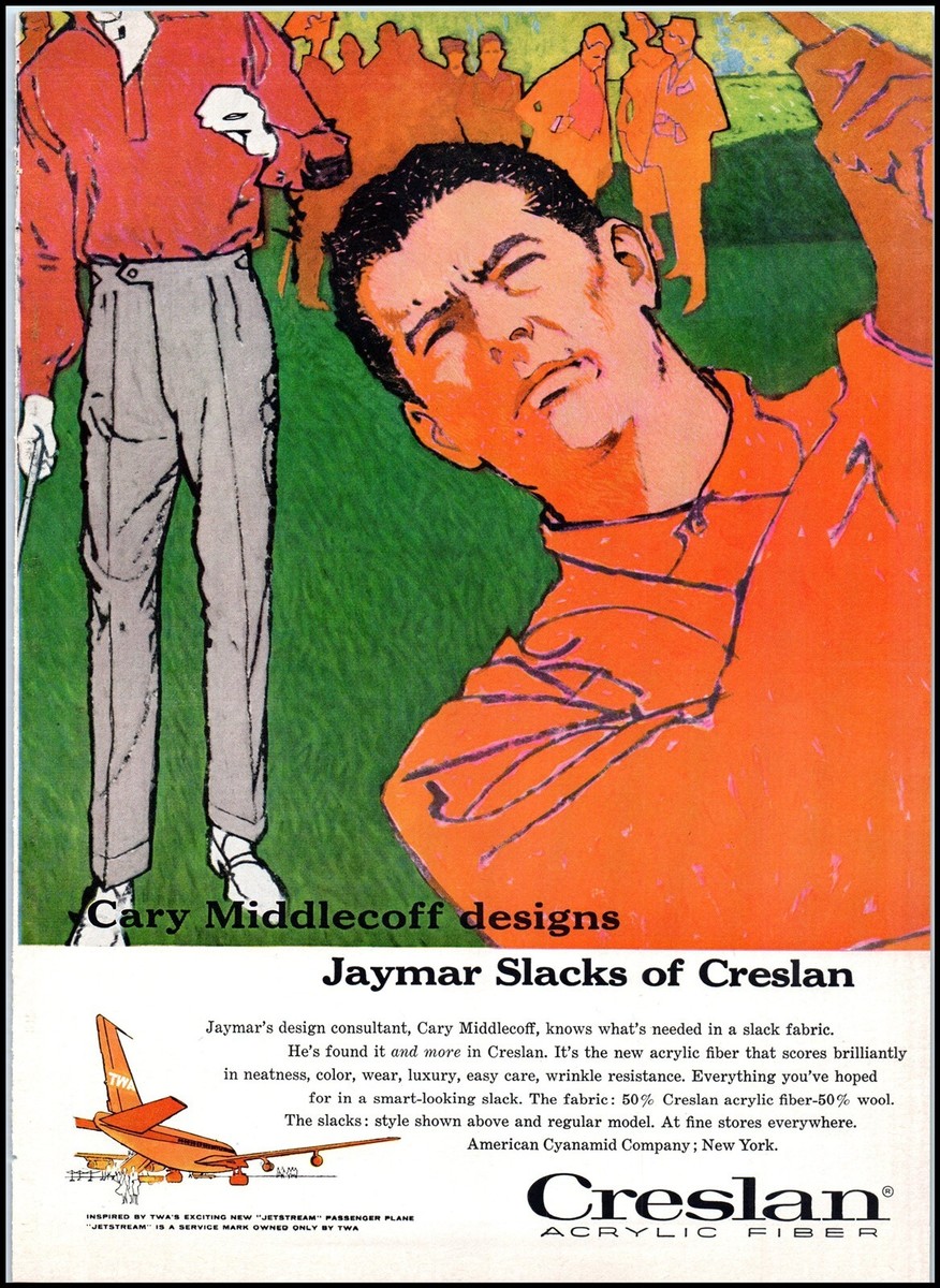 1950s Jaymar Slacks Of Creslan PRINT AD Golfer "Cary Middlecoff Designs" BX1