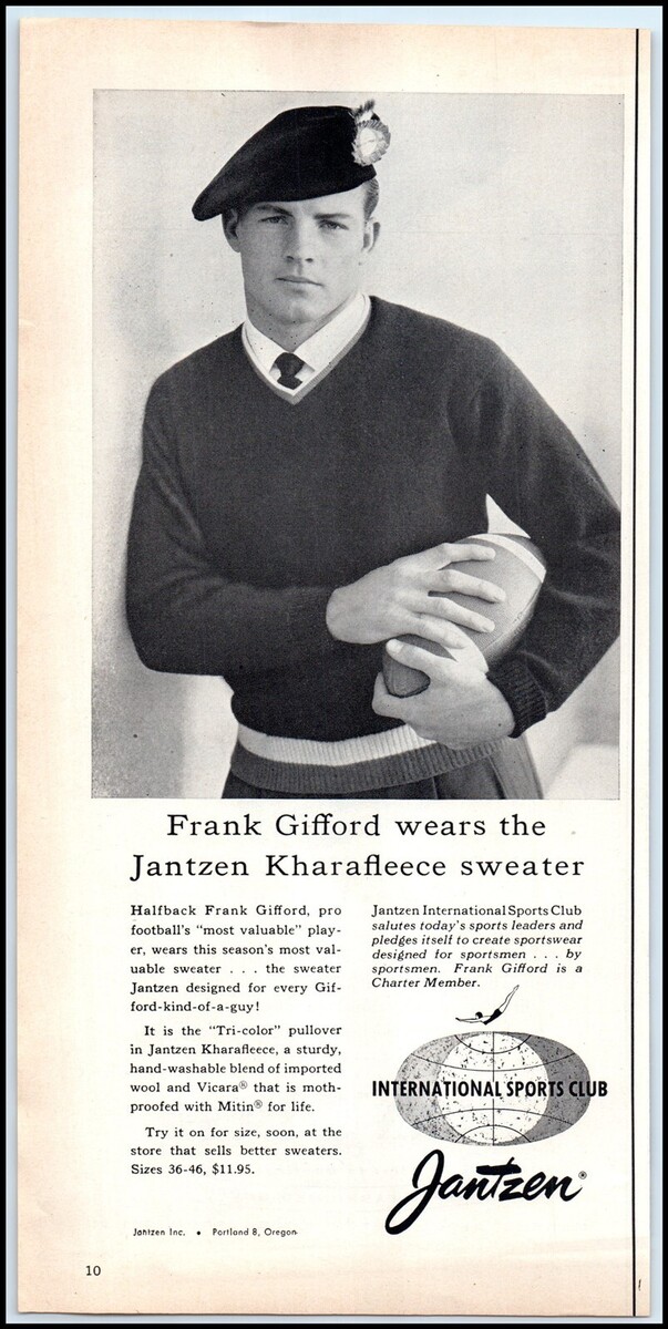 1950s Jantzen Kharafleece Sweater PRINT AD Pro Football Frank Gifford BX2