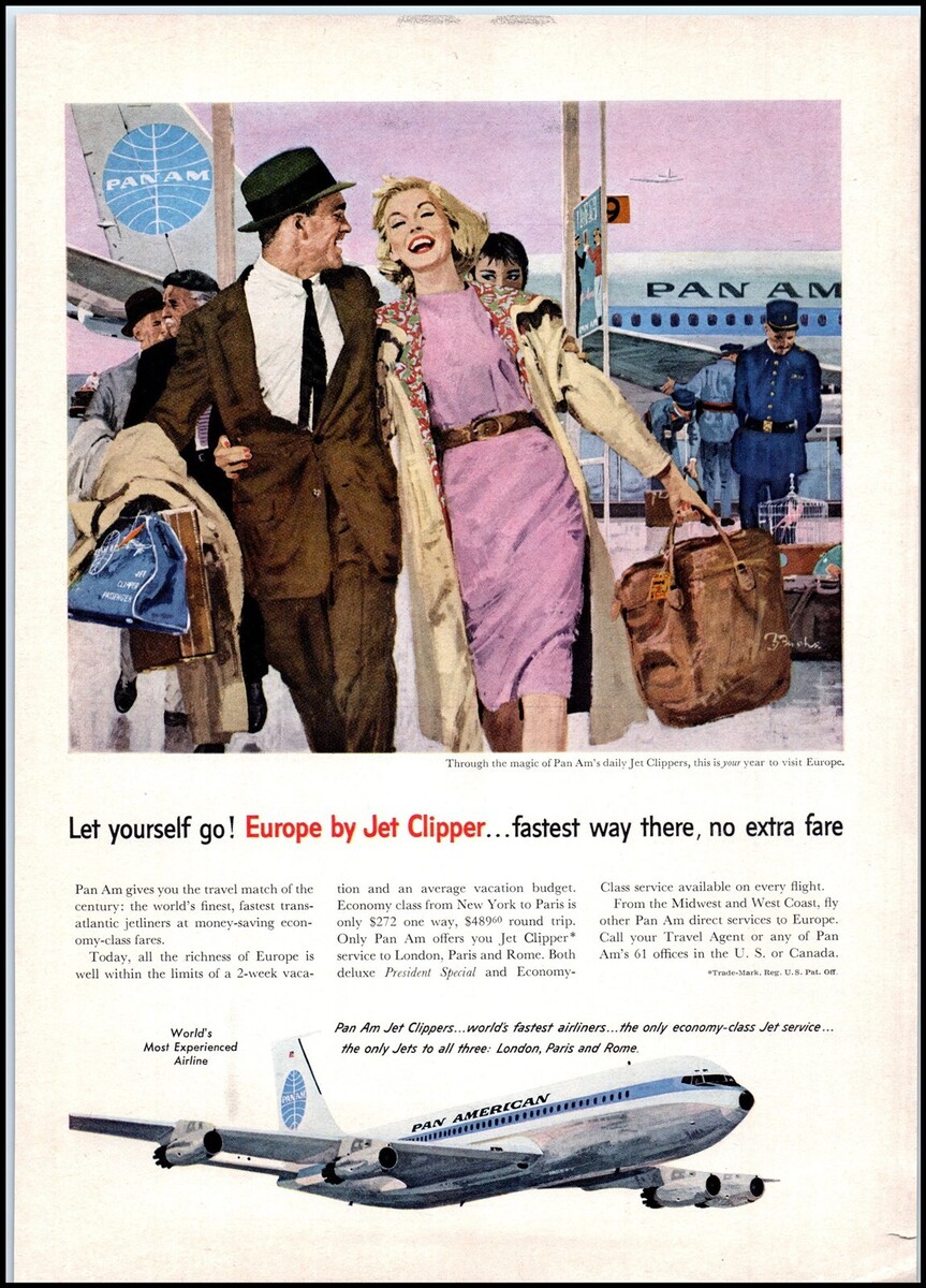 1950s Pan Am PRINT AD Europe By Jet Clipper BX2
