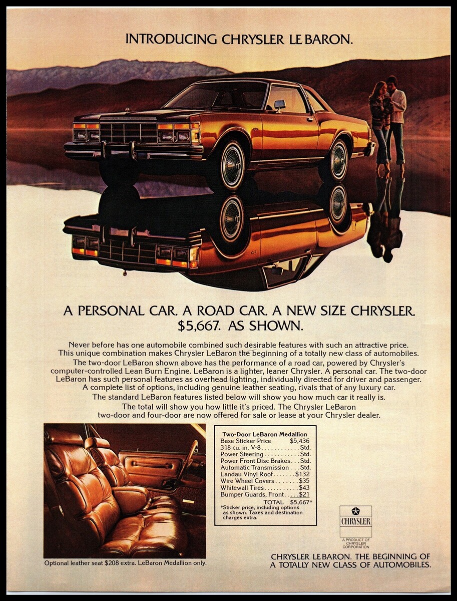 1977 Magazine Car Print Ad - Chrysler Le Baron 2 Door Medallion A6