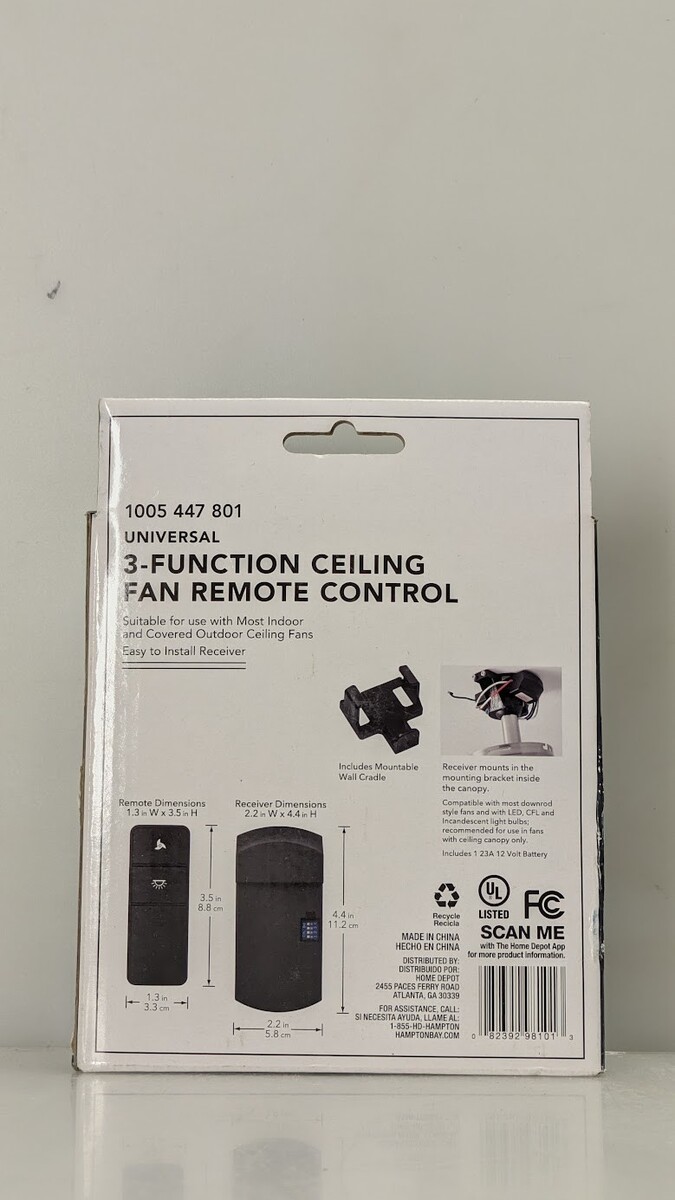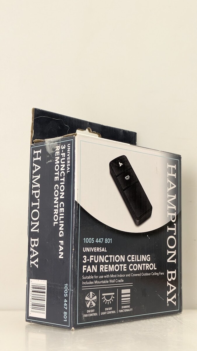 Hampton Bay Universal 3-Function Ceiling Fan Remote Control Black + Wall Cradle