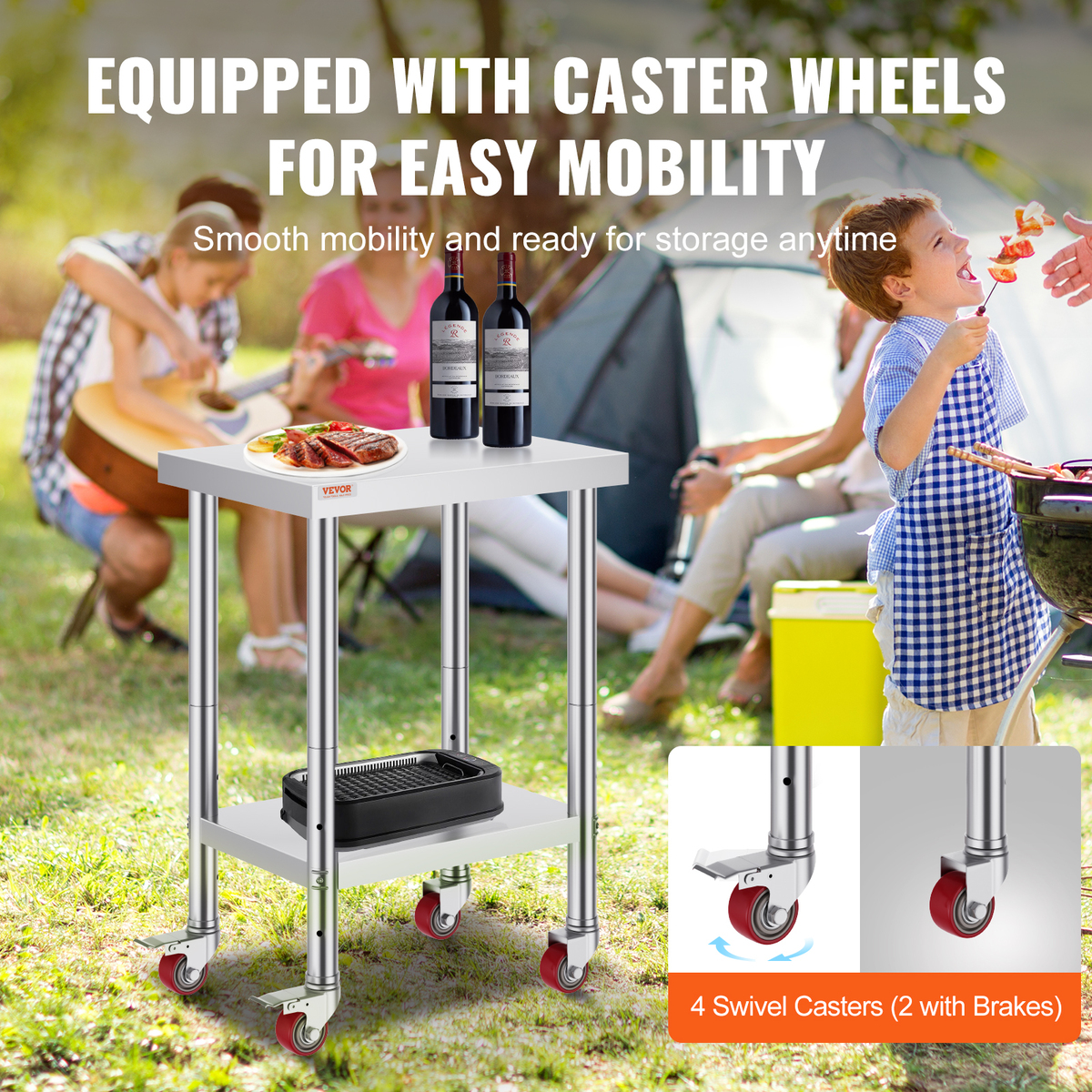 VEVOR Stainless Steel Work Table 24x18x34 in, 700 lbs Load Capacity, Adjustable