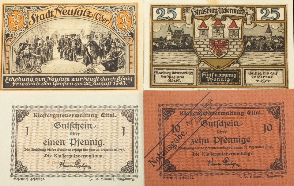 Issued by: Bad Godesberg, Badetz, Eßlingen, Ettal, Hadersleben, Hersfeld, Kamen, Kolberg, Koln, Liegnitz, Lingen, Luckau, Muhlhausen, Neusalz, Neustadt, Ochsenfurt, Rodesheim, Schoppenstedt, Stadtlengsfeld, Strasburg, Teterow, Zahna, Zerbst