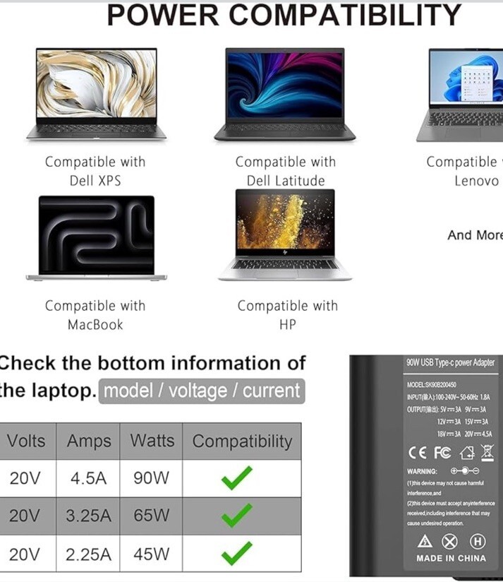 90W USB-C Type-C AC Adapter AD200450 Output and 49 similar items