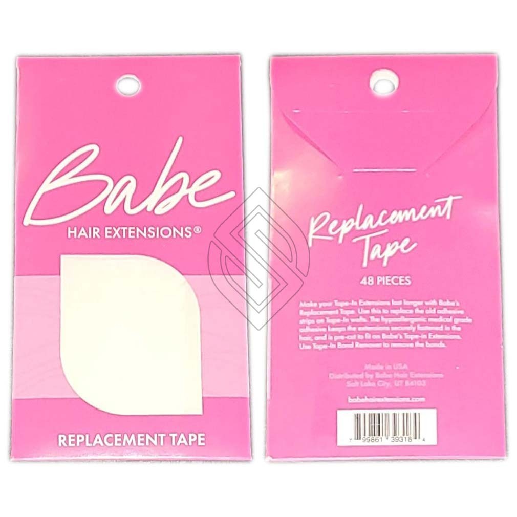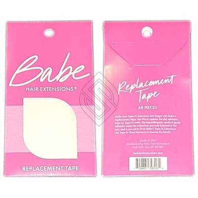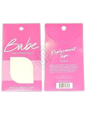Babe 48 Pieces For Tape-In Extensions Replacement Tape Double Sided. Make your Tape-In Extensions last longer with Babe?s replacement tape. Simply remove the old tape adhesive with the Tape-In Bond Remover and adhere the double-sided tape to the wefts. Then just install as normal. The tape is medical grade and is shaped precisely for Babe Tape-In Extensions.
