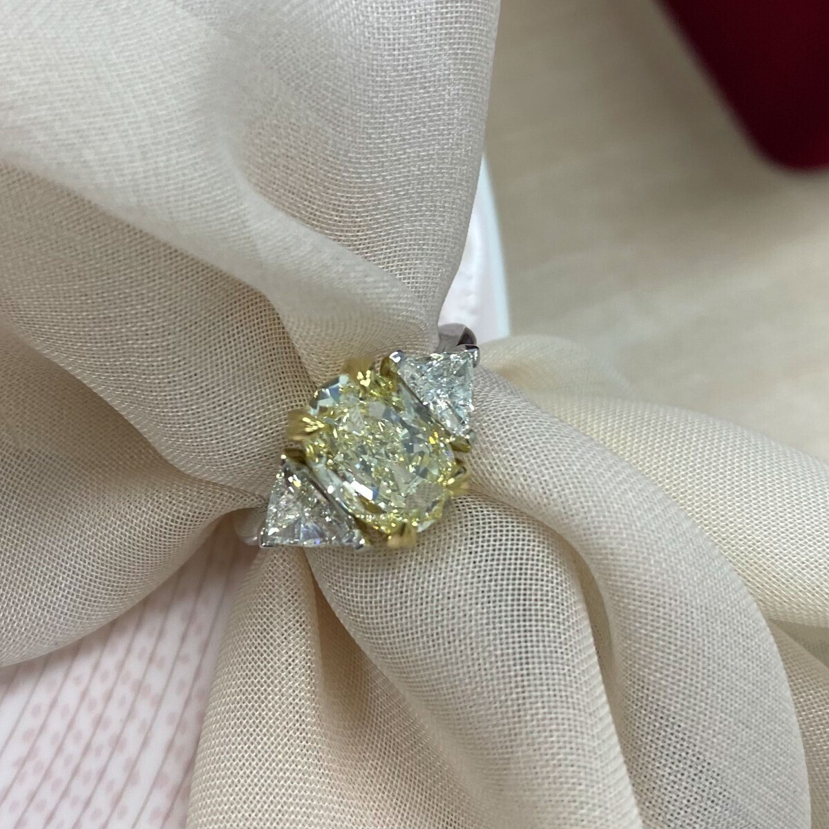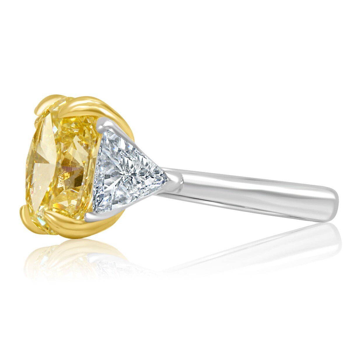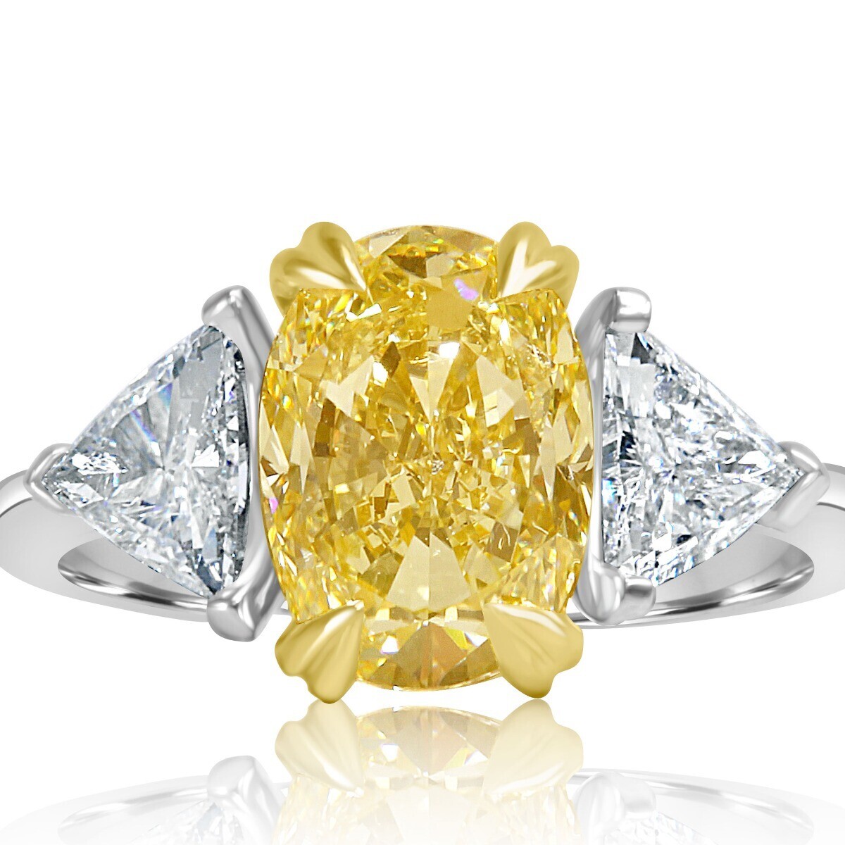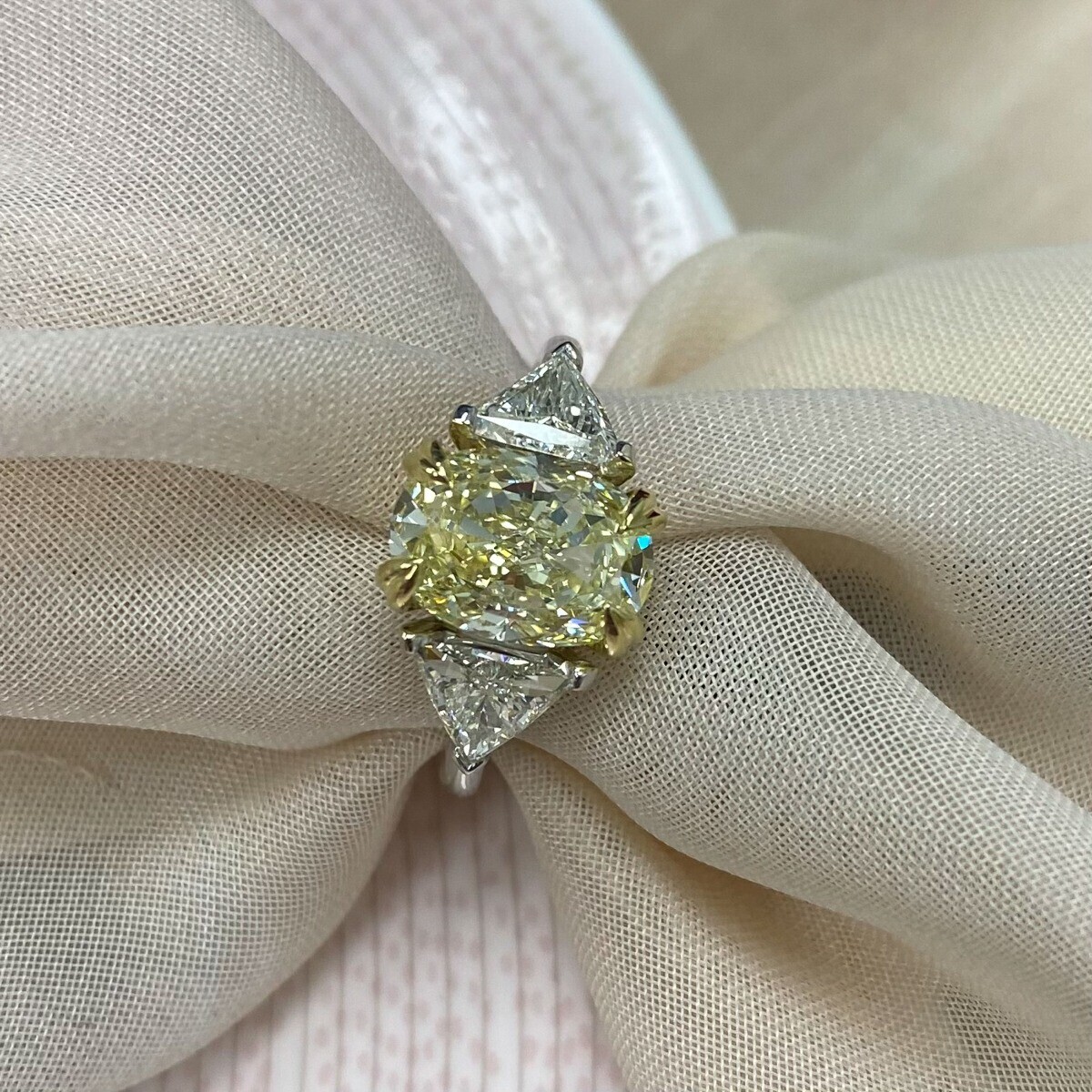 3 Stone GIA 3.93 Ct VVS2 Oval Cut Light Yellow Diamond Engagement Ring 18k Gold