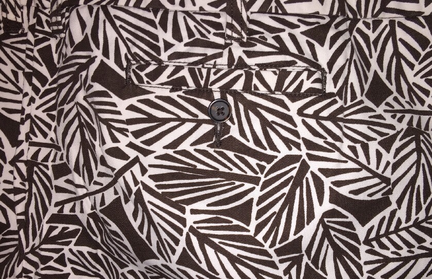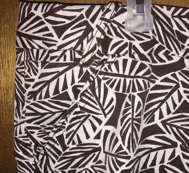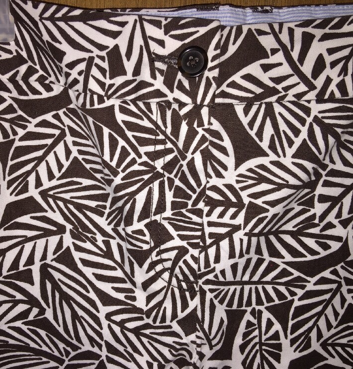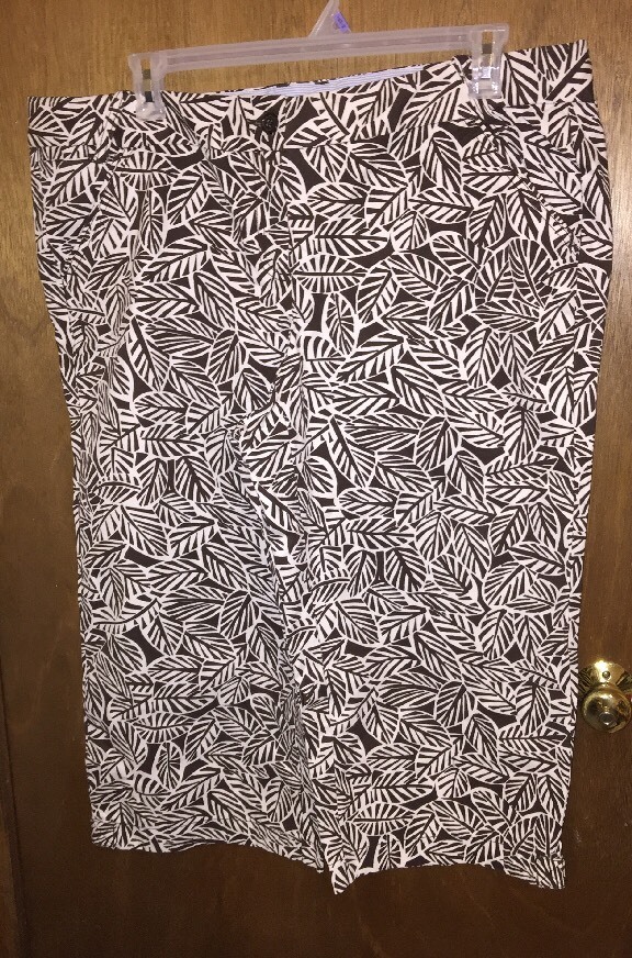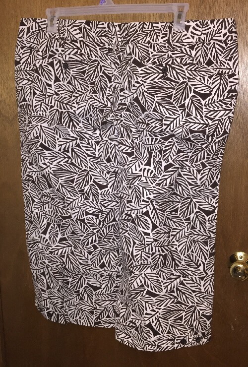Brown white leaf print capris by Lands End. Size 18P, two side pockets and a small coin pocket in front, two button pockets in back. Very good condition.