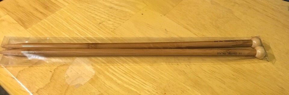 Crystal Palace bamboo knitting needles are made in Japan. These are single point 12 inch needles, size 11. New in original package.
