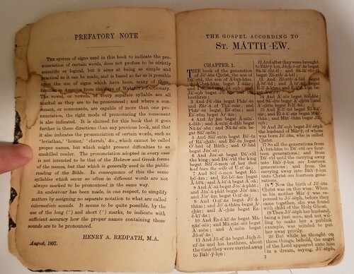 Rare 1898 Small Oxford University Press The New Testament of our Lord and Savior Jesus Christ Holy Bible. Definate signs of use, age and wear. Please see all Photos as part of the description. Looks like its mostly readable. 373 pages. Size 6" x 4"