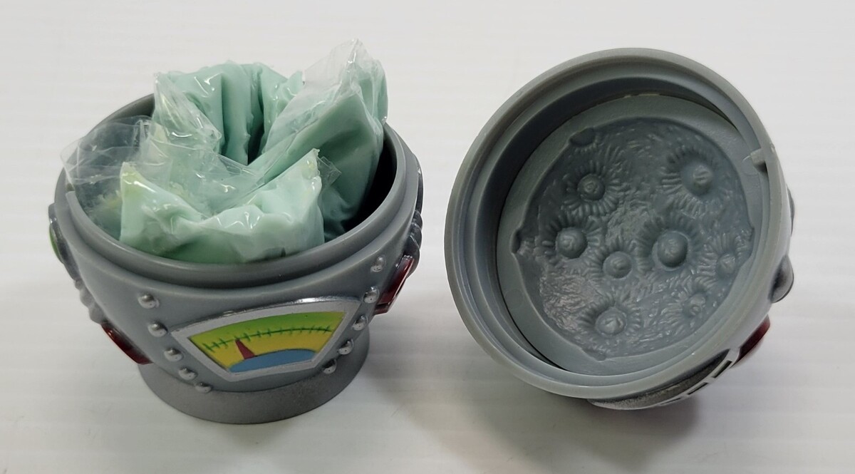 Robot capsule in un-used old toy that still has original slime putty, but has been in storage for some time.