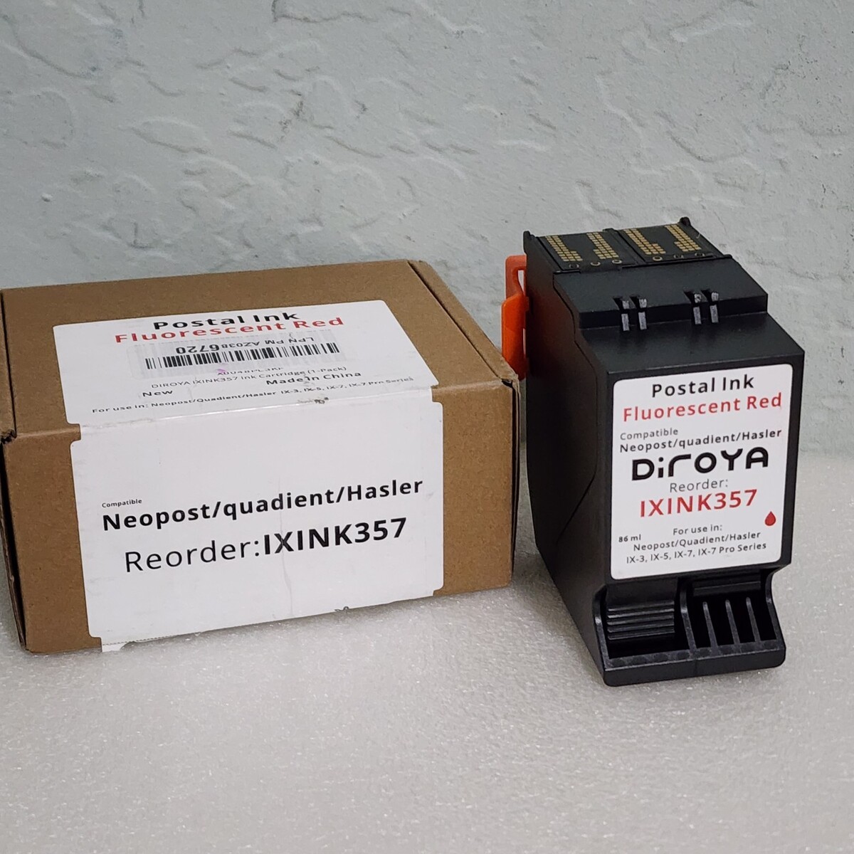 Package Contents: 1-PACK Compatible for Quadient Neopost IXINK357 Ink Cartridge Fluorescent Red Postage Ink Cartridge for IX3 IX5 IX7 Mailing System Postage Meter