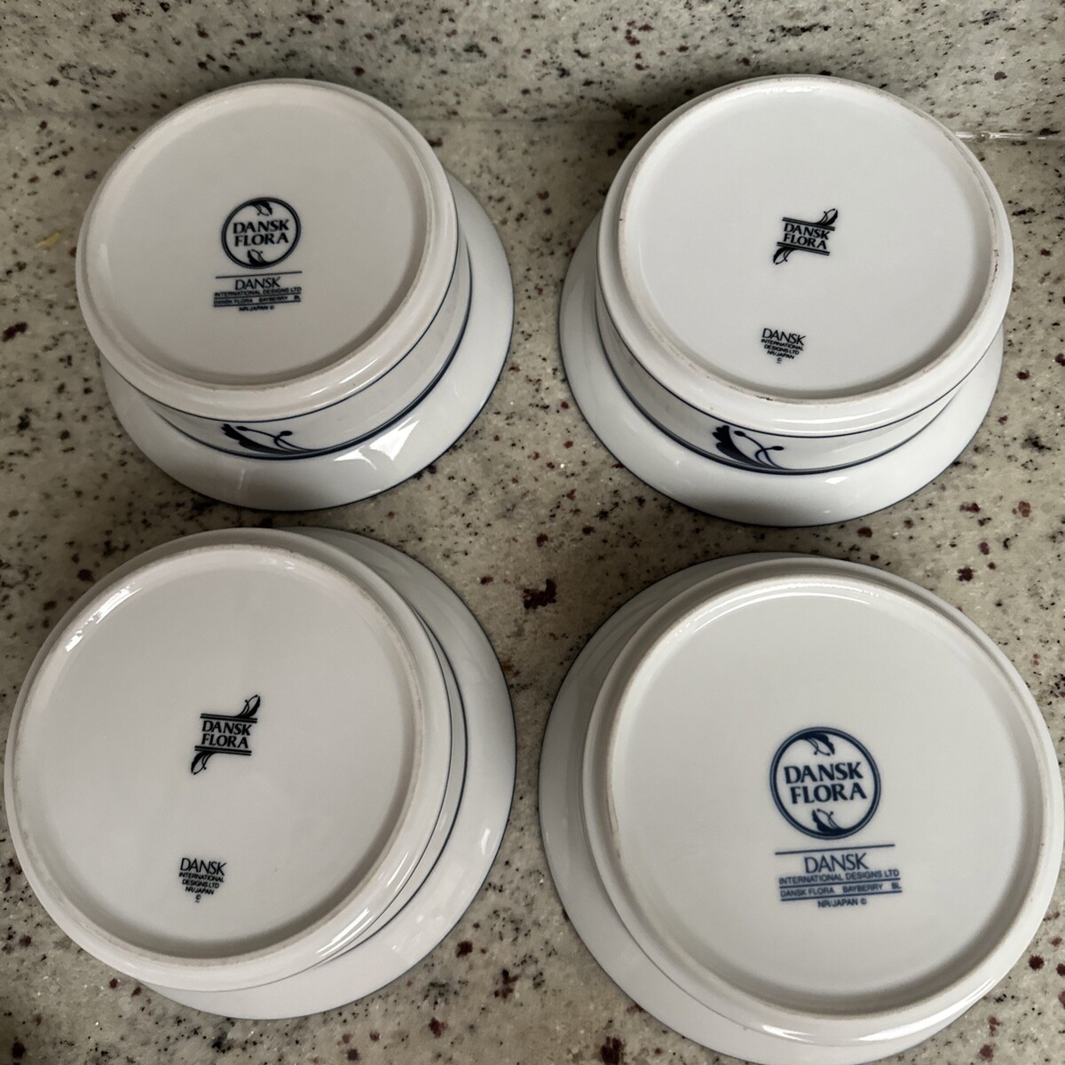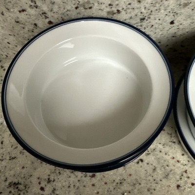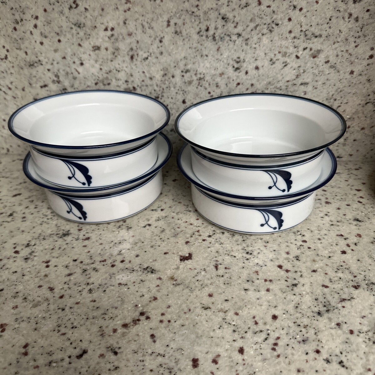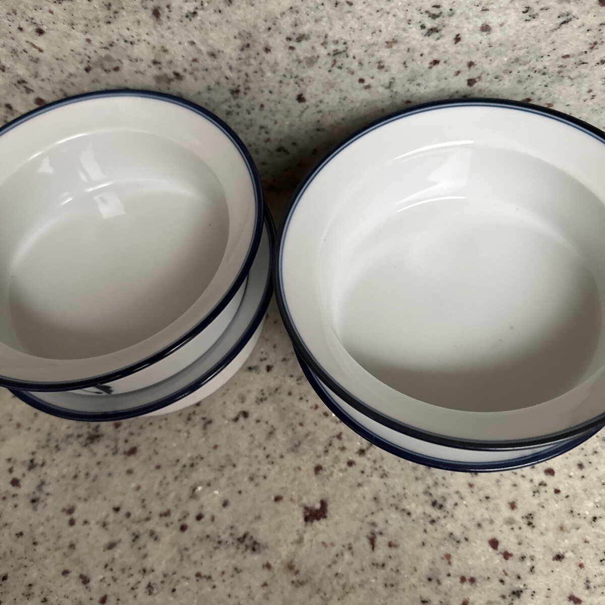 Dansk Bistro Flora 4pc Rim Bowl White Blue Stripes Pre Owned. RARE ITEM