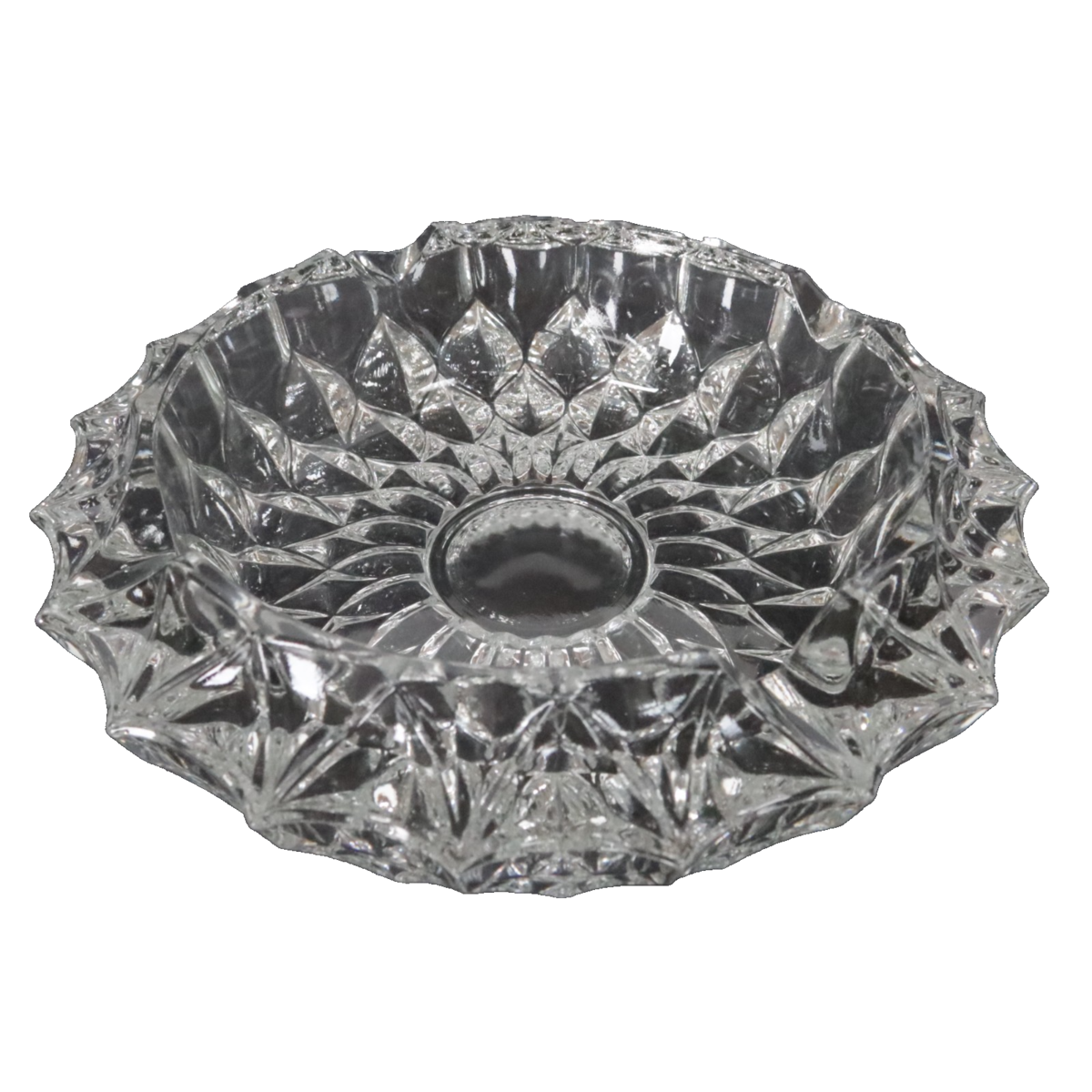 Vintage Tobacciana Lead Crystal Cut Clear Glass Ashtray 7 Inch Cigar Cigarette