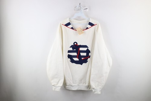 Deadstock Vtg 70s Streetwear Womens Large Nautical Boat Anchor Sweatshirt USA