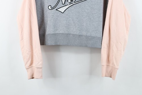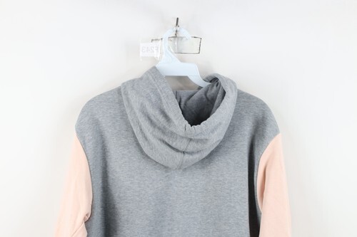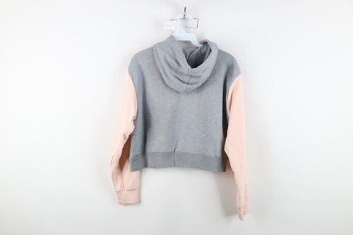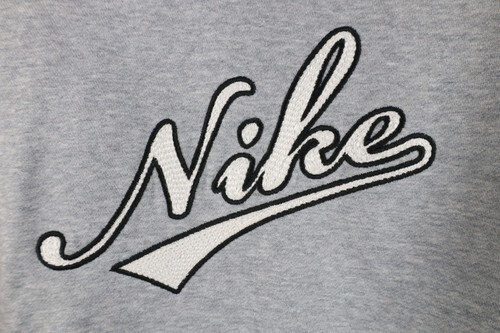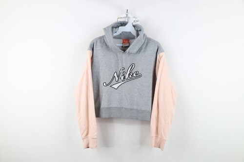 Vintage Y2K Nike Womens Large Chain Stitch Script Spell Out Cropped Hoodie Gray