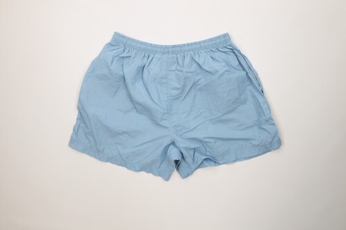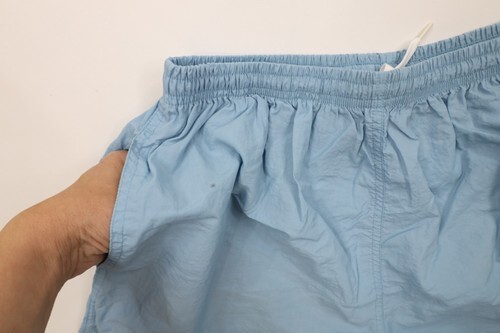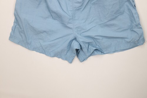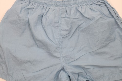 Bleach blemishes back left leg. Stains front, back right leg. String distressed. Color faded. Waist discolored