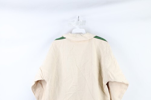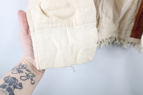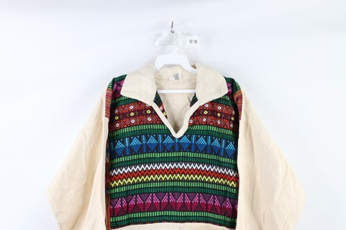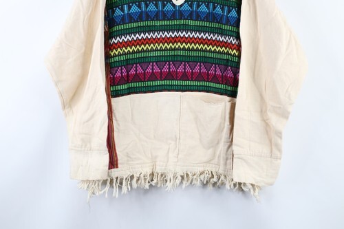 Vintage 60s Boho Chic Womens Large Fringed Striped Tapestry Tunic Shirt Rainbow