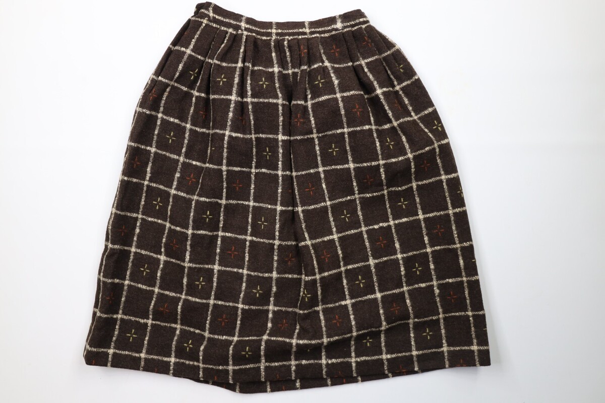 Vintage 50s 60s Mid Century Modern MCM Womens 24 Checkered Wool Tweed Skirt USA