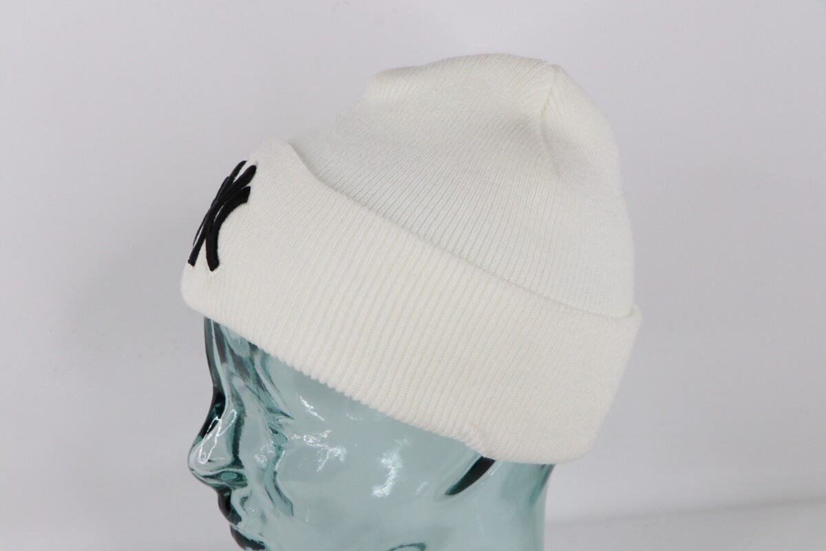 NOS Vtg Hip Hop New York Yankees Baseball Knit Winter Beanie Hat White Womens