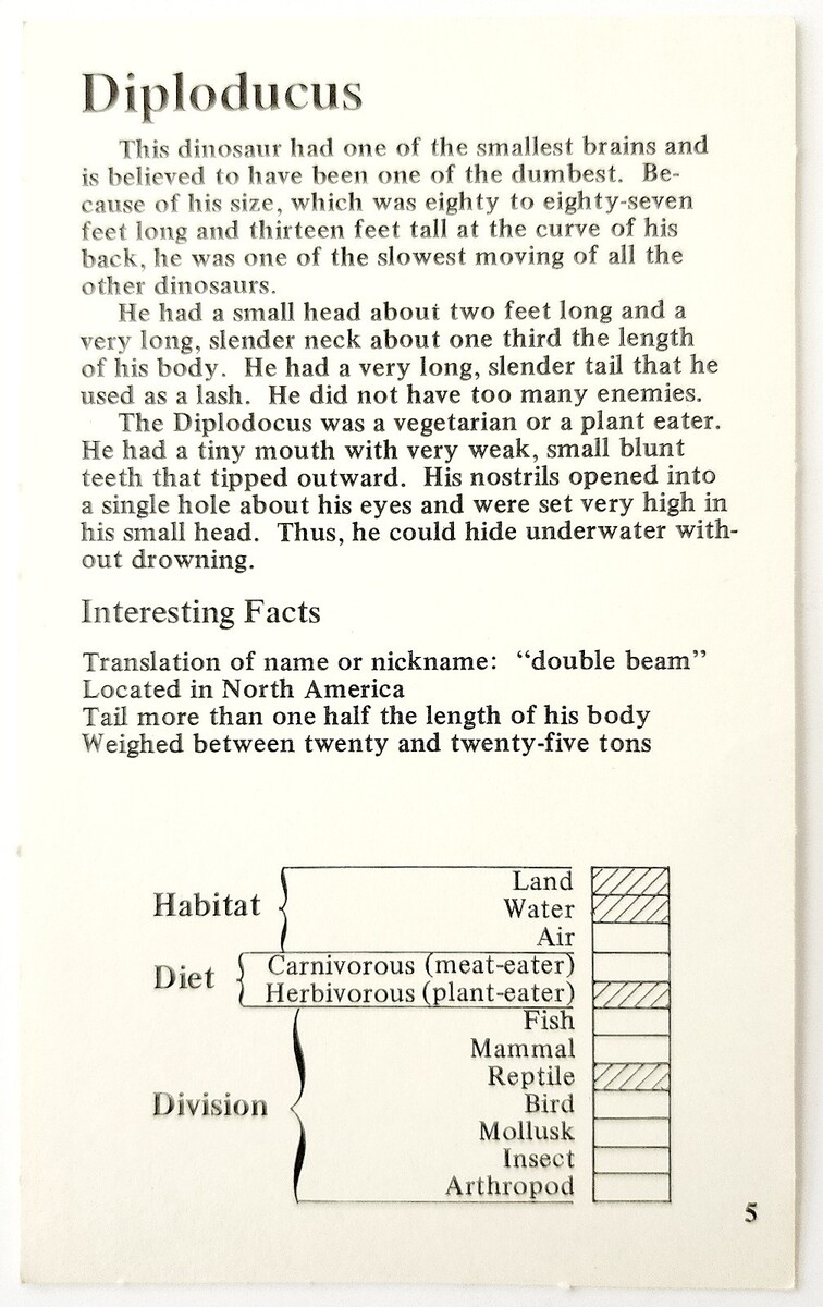 1975 DIPLODOCUS Dinosaur Card Vintage and 50 similar items