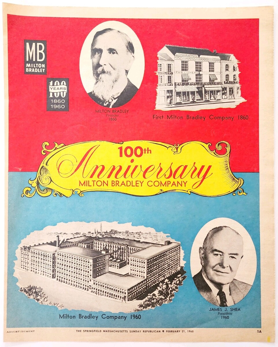 1960 Milton Bradley 100th Anniversary Advertisement Games Lithographer DWJJ5