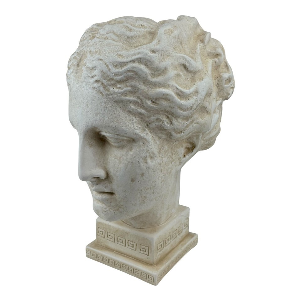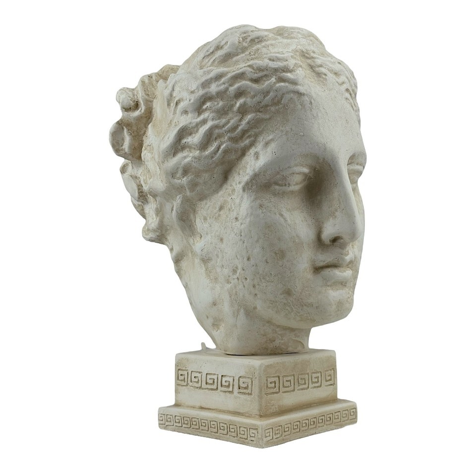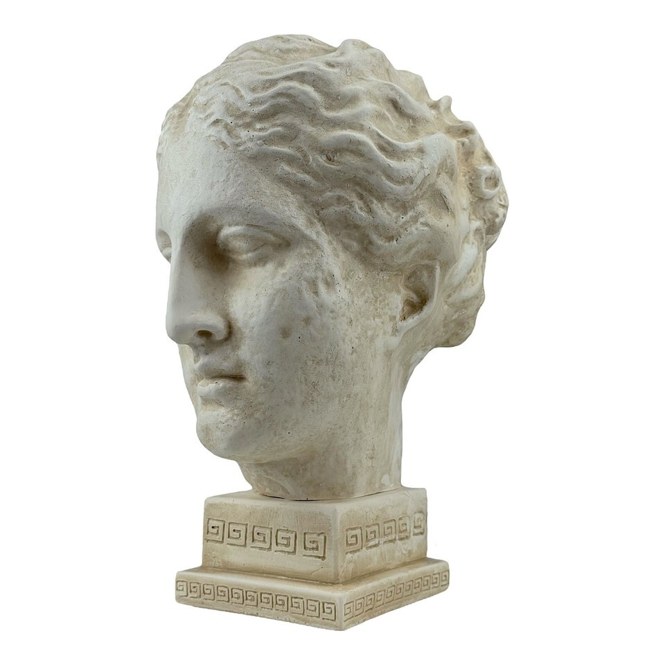 Handgefertigt in Griechenland, fangt es den ruhigen Ausdruck und die klassische Eleganz der Gottin ein und macht es zu einem auffalligen dekorativen Stück für Hauser, Büros oder Wellnessraume.