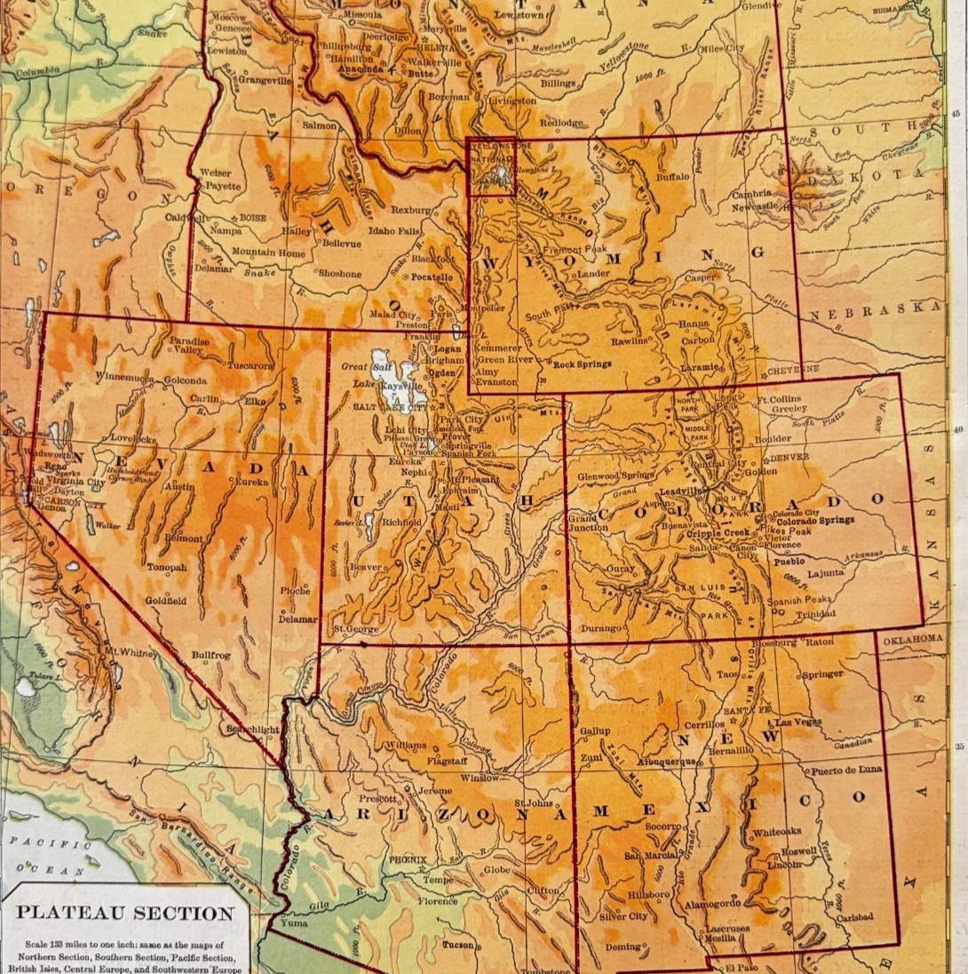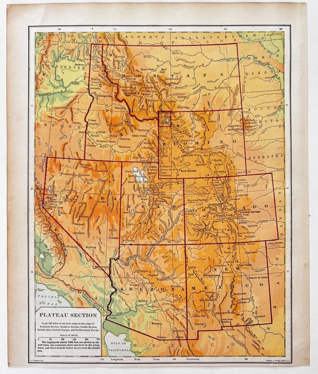 1898 Map Plateau States USA Victorian Physical Geography Atlas Print DWXX1
