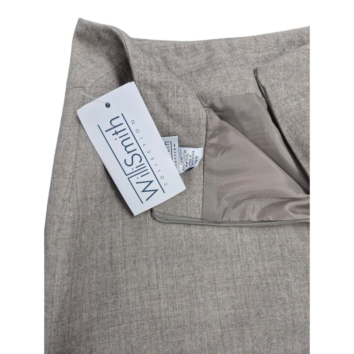 NWT Willi Smith 100% Wool Tan Skirt Zipper at Slit Fully lined Sz 14