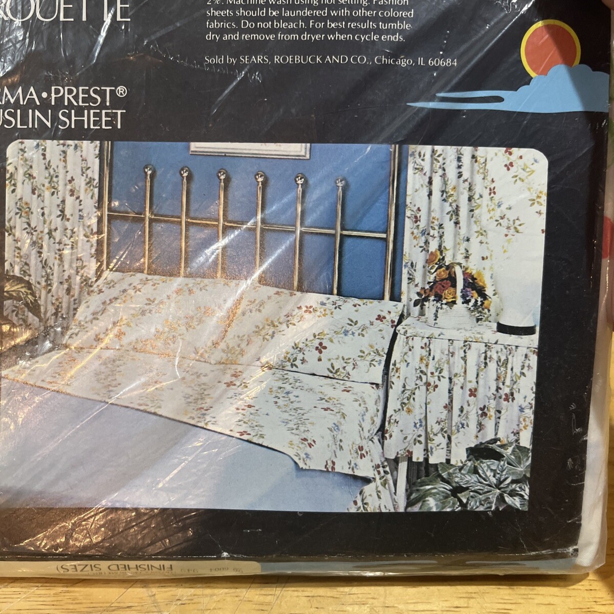 Vtg Pirouette Floral Country Cottage Twin Flat Sheet by Sears NOS