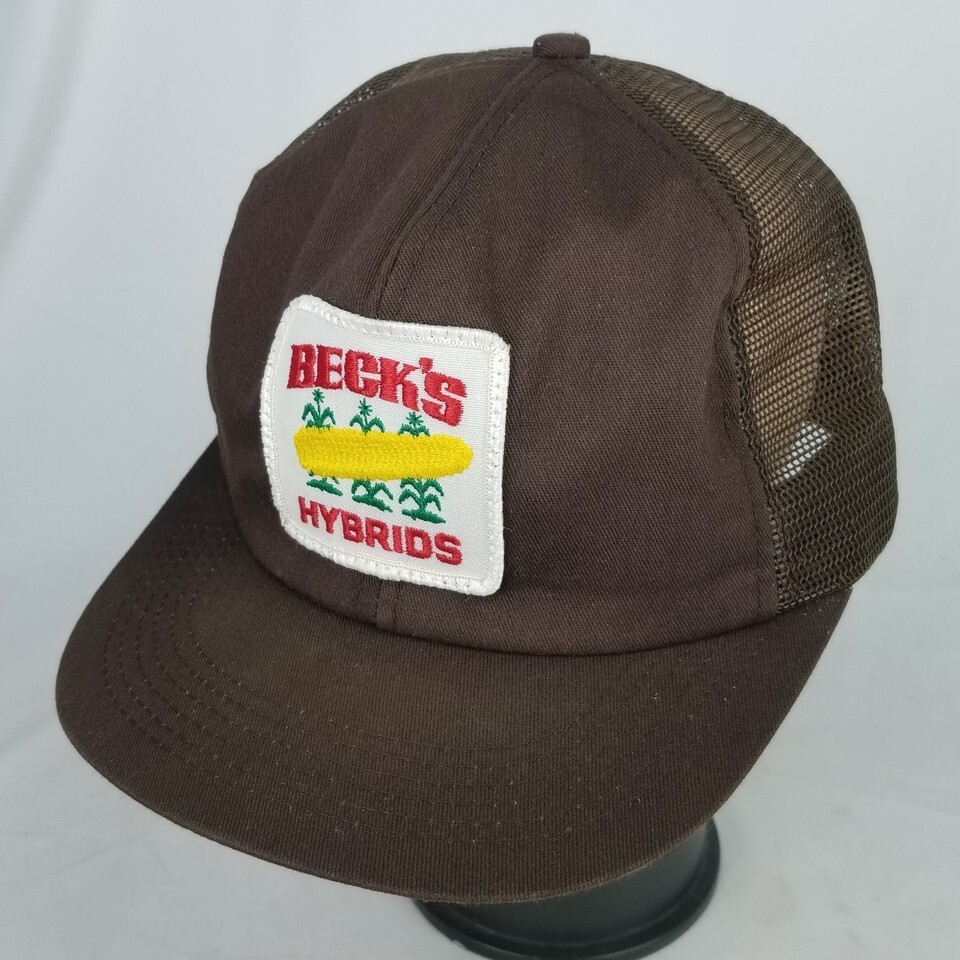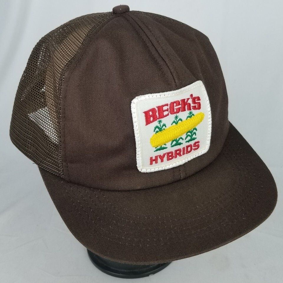 vintage trucker hat Beck's Hybrids seed corn snapback cap brown MADE IN USA!