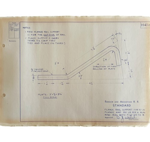 1971 Railroad Bangor Aroostook Flange Rail Support Blueprint H41c DWDD13