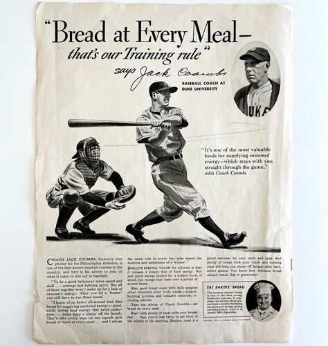 1940 Jack Coombs Duke University Baseball Bakers Bread Advertisement XL