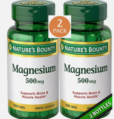2x Nature's Bounty Magnesium 500 mg Tablets 100 ea Exp 3/2027