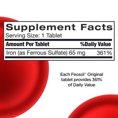 4 Pack Expiration Date 8/27+ ? High Potency Iron Supplements for Women, Men, and Children Over 12: Each Feosol Original tablet contains 65 mg of elemental iron, equivalent to 325 mg of ferrous sulfate, which provides 360% of Daily Value, making it a high potency iron supplement ? The Form of Iron Tablets Doctors Often Recommend: Feosol Original contains Ferrous Sulfate, a form of iron supplement widely recommended by doctors ? Blood Builder Benefits: Just one Feosol Original Iron Supplement tablet every day helps support red blood cell production, energy, and a healthy immune system* ? Made in USA: Feosol has been a trusted leader and innovator of iron supplements for over 70 years ? Scroll down for more information about iron supplements