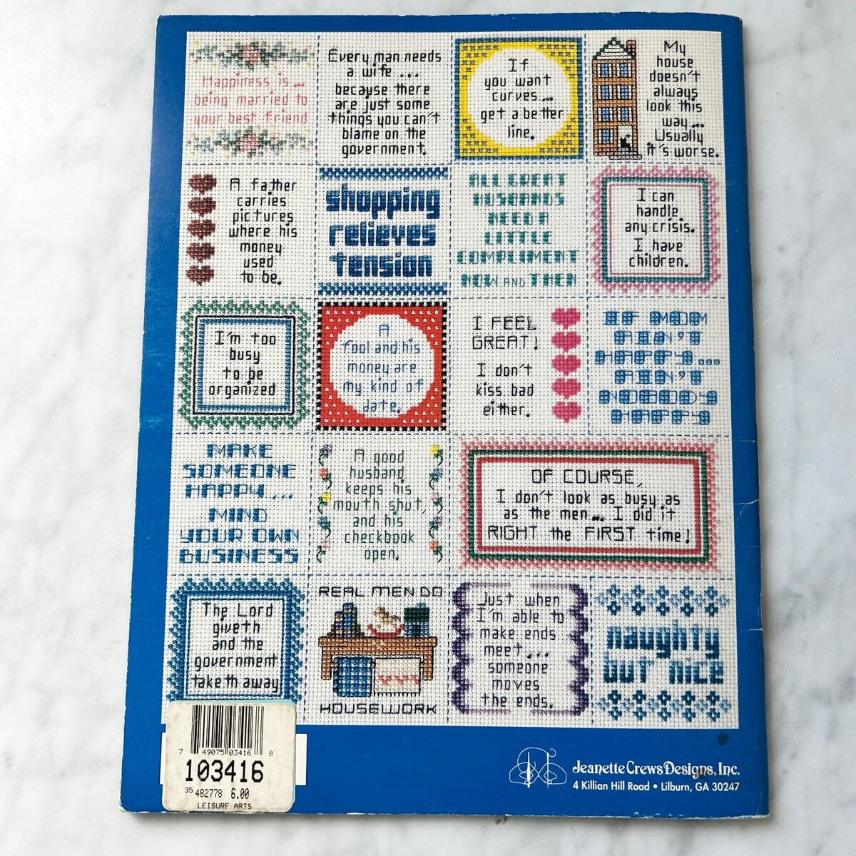 Vintage Beginner Series Book Two 340 More Mini Messages by Dale Burdett. Quick and Easy designs for cross stitch. Booklet by Jeanette Crews Designs, Inc. 1994.