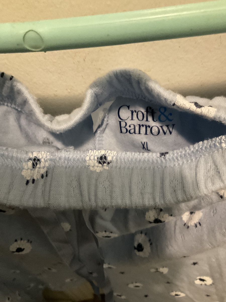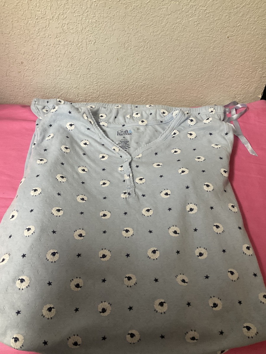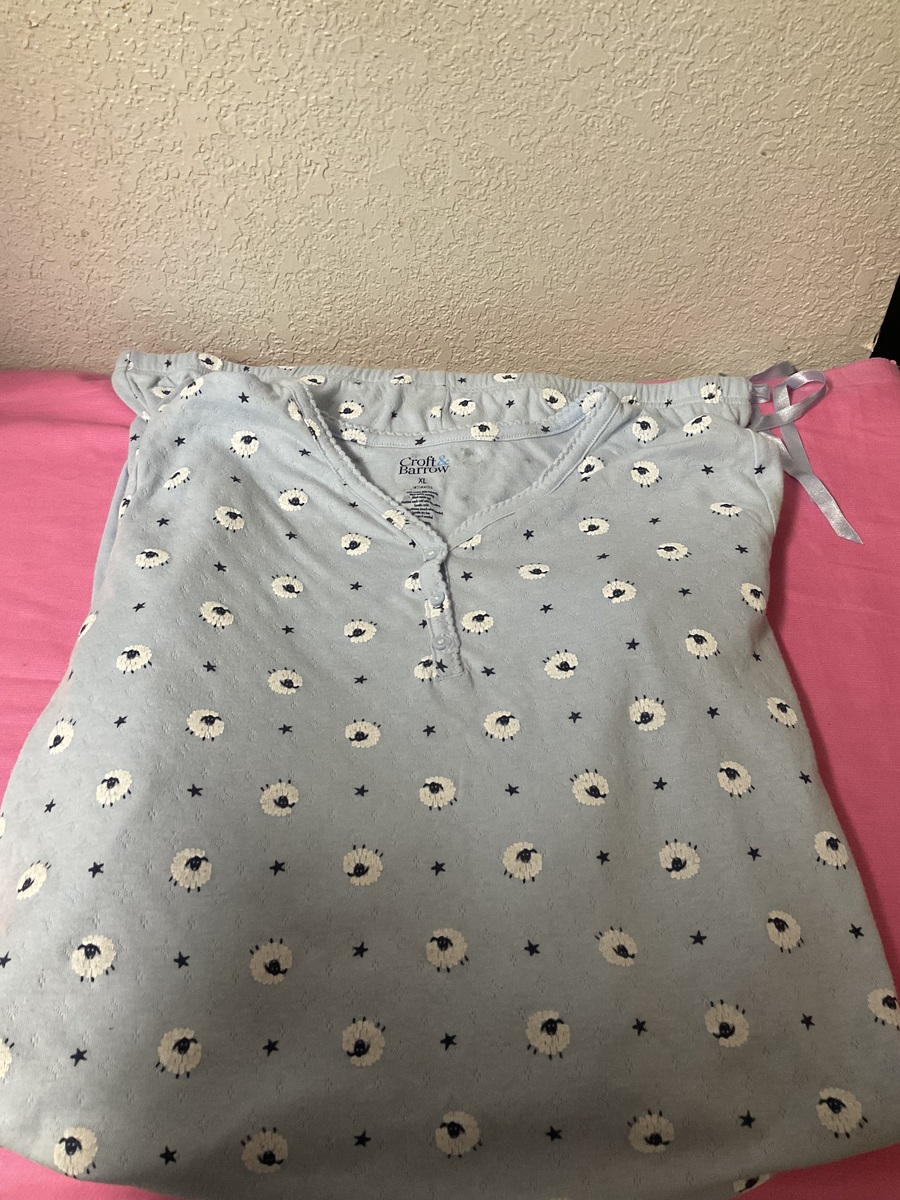 This listing is for a women’s Croft Barrow XL long sleeve pajama set featuring plenty of sheep. It’s 60% cotton and 40% polyester. It’s perfect for those cool days which are just around the corner. Very good condition. Please see all pics as they are part of the description. It comes from my smoke free home. Sold AS IS.