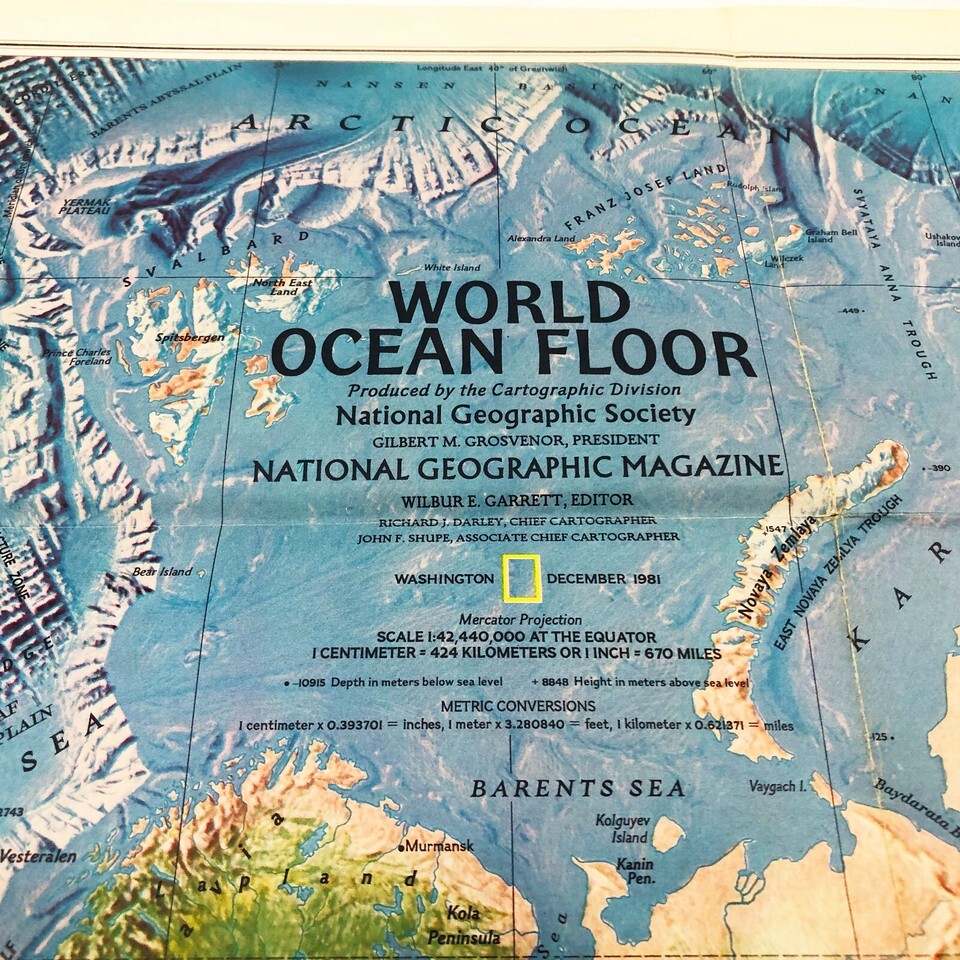 Vintage 1981-12 December THE WORLD WORLD OCEAN FLOOR National Geographic Map