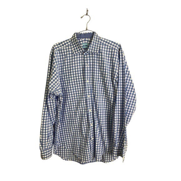 J.McLaughlin Men’s Blue White Gingham Slim Fit Button Down Shirt Size Large