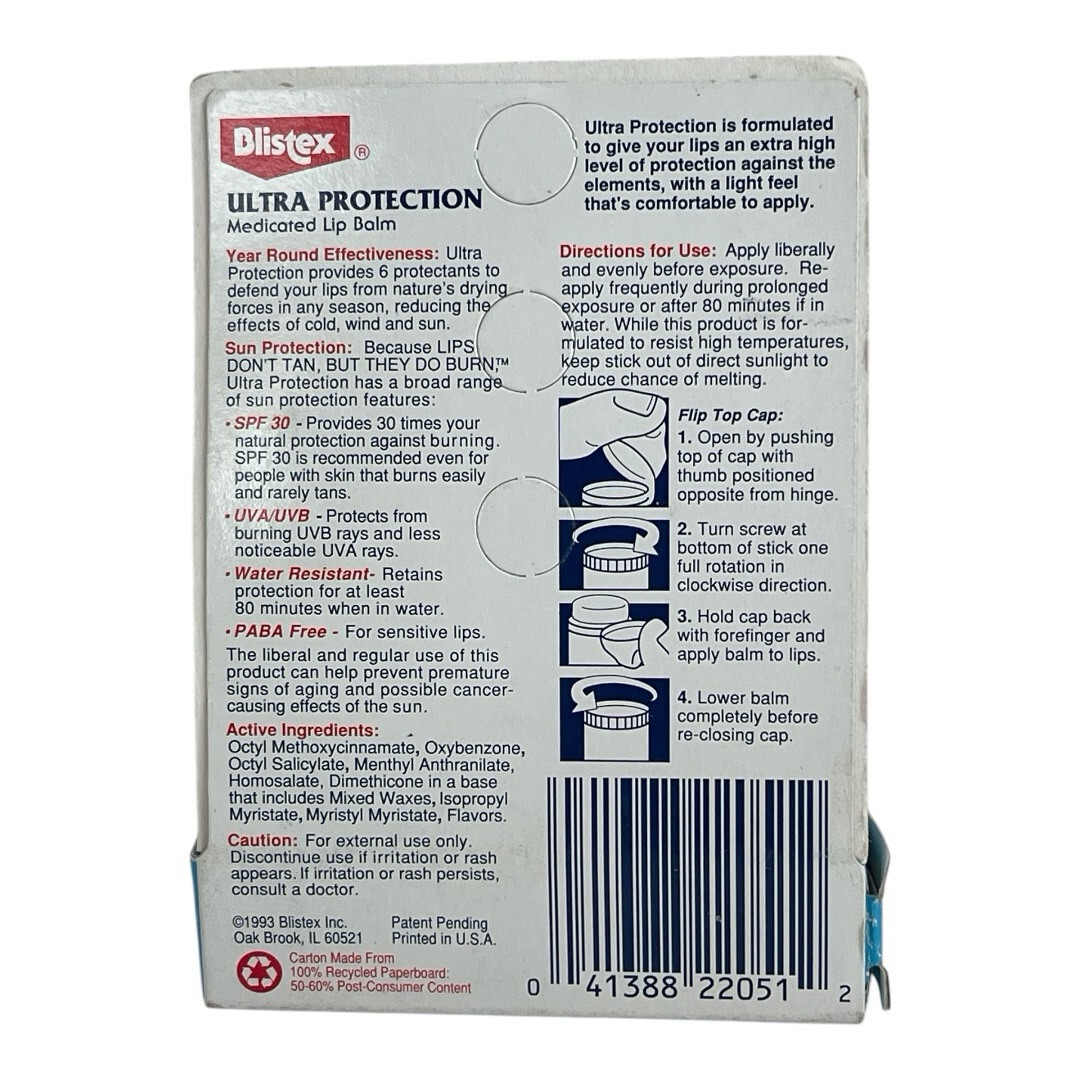 Blistex Medicated Ultra Protection Lip Balm SPF 30 Flip Top Cap Vintage 1993 New (1)