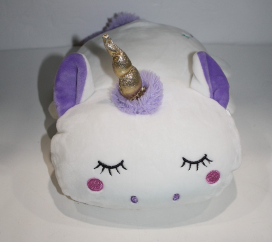 Dan Dee Unicorn White Purple Ears Plush Stars Soft Toy Sleep Flat Pillow Stuffed