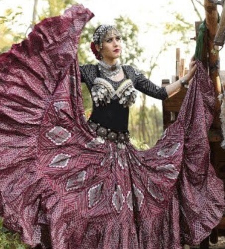 BURGUNDY AND SILVER ASSUIT PRINT TRIBAL ATS AMAZING GYPSY Skirt 25 YARDS~36"