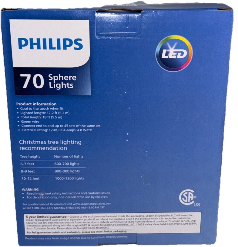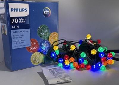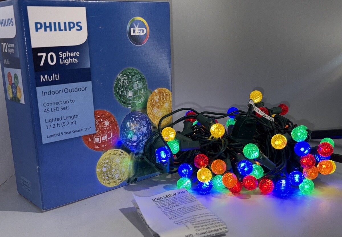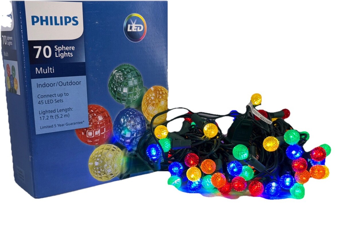 Philips Christmas LED 70 Sphere Lights MULTI Color-Indoor/Outdoor 17.2’L-NEW