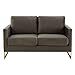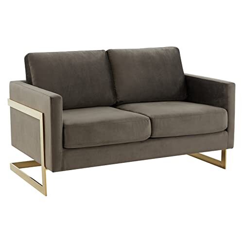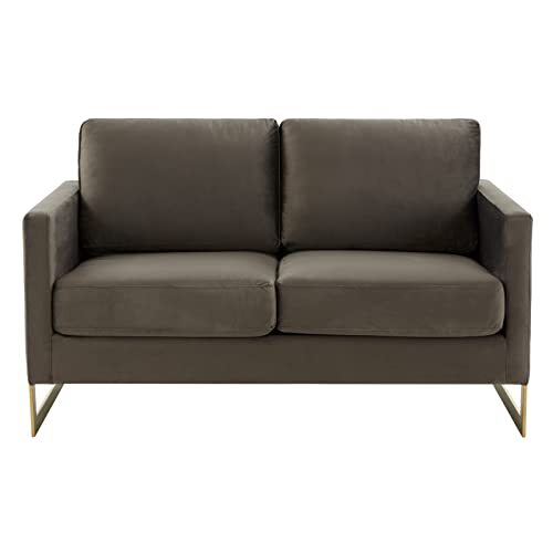 LeisureMod Dark Grey Modern Mid-Century Upholstered Velvet Loveseat with Gold Fr
