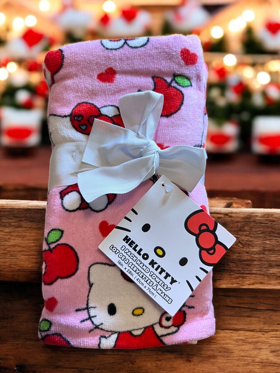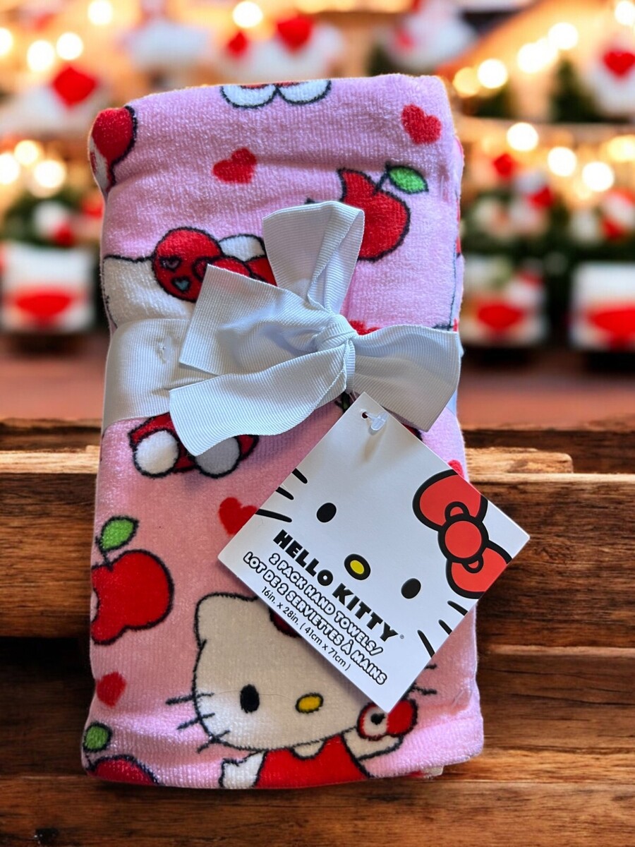Add a sweet and playful touch to your home with these adorable Hello Kitty hand towels! Featuring a charming design of pink hearts, apples, and Hello Kitty on a soft pink background, this 2-piece set is perfect for fans and collectors alike.
